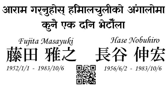 1983年10月6日、私達の友人、藤田雅之君と長谷伸宏君は、Himalchuli峰南西壁の登攀中に遭難しました。二人の遺骸は、Himalchuliに抱かれるように氷河の中で眠っています。